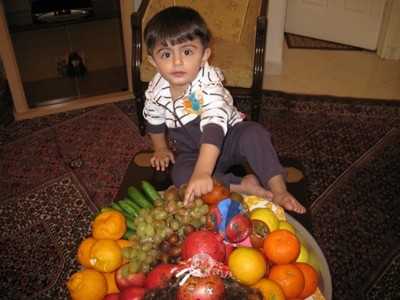 ایلیا جان من در حال ناخنک زدن به میوه ها