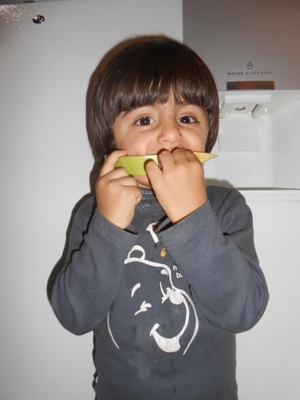 ایلی جون من عاشق هندوانه است شب قبل که رفتیم برای خونه مامان طاهره هندوانه بخریم سرش رو از پنجره ماشین بیرون کرد و با زبون شیرین خودش گفت بابا تورو خدا دو تا بخر یکی ببریم خونه خودمون یکی خونه طاطا شب ساعت 12 هم که رسیدیم خونه گفت اول هندونه بخوریم اول بخوابیم دیگه هر کاری کردم راضی نشد بدون خوردن هندوانه بخوابه