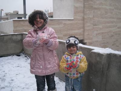بعد از مدتها اواسط بهمن ماه تهران هوای 8-7 درجه زیر صفر را تجربه کرد، هوای تهران از آلودگی وحشتناک ماههای اخیر نجات پیدا کرد و برف و سرما میهمان خونه هامون شد ایلیا که تازه می فهمید برف چیه اولش فکر می کرد همه جا رو کف گرفته و مدام می گفت "مامان شرا همه جا کفه؟" هر چی من می گفتم برفه می گفت "نه ببین شبیه کفه!!!" دیگه یه روز که زودتر از سر کار برگشتم بااینکه برف نسبت به روزهای پیش کمتر شده بود اما باز از هیچی که بهتر بود... با پسر گلم رفتیم پشت بام برف بازی که در همین حین دوستش عسل هم به ما پیوست و یک برف بازی حسابی کردیم به بچه ها که خیلی خوش گذشت و من هم از شادی پسرکم کلی روحیه ام عوض شد بعد هم ایلیا یه شلغم حسابی خورد، بعدش یه دوش آب گرم و برای اولین بار شب ساعت 9 بیهوش شد