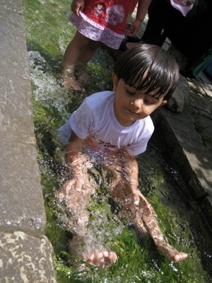 قبل از رفتن به حمام فین اول توی پارک روبروی حمام جای همگی خالی ناهار و خوردیم، بچه ها آب بازی کردند و بعد هم رفتیم حمام فین
