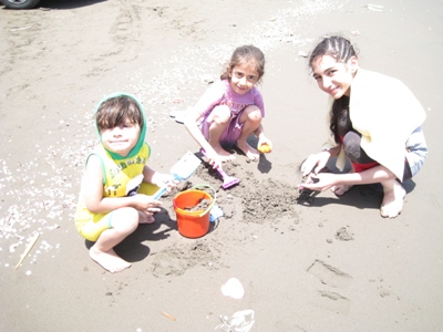 روز سوم که پنجشنبه بود بعد از دو روز هوای ابری و بارانی هوا روی خوشش رو به ما نشان داد و آفتاب شد رفتیم ساحل بچه ها کلی آب بازی و ماسه بازی کردند و خیلی بهشون خوش گذشت