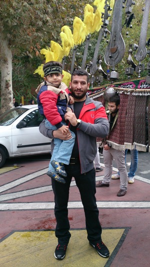 محرم امسال به خاطر شرایط من کمتر بیرون می رفتیم و بیرون رفتن ها رو گذاشتیم واسه روزهای تاسوعا و عاشورا که تاسوعا به علت بارندگی بیرون نرفتیم و سه شنبه 13 آبان که هوا نسبتا بهتر بود رفتیم بیرون ایلی جون هم که مثل همیشه آقا بود کمی وسط هیات ها رفت و با تعجب نگاهشون کرد کمی هم با خاله الهام و دایی رضا سرگرم بود من و دخملم هم که بیشتر نظاره گر بودیم