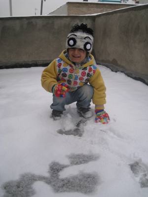 بعد از مدتها اواسط بهمن ماه تهران هوای 8-7 درجه زیر صفر را تجربه کرد، هوای تهران از آلودگی وحشتناک ماههای اخیر نجات پیدا کرد و برف و سرما میهمان خونه هامون شد ایلیا که تازه می فهمید برف چیه اولش فکر می کرد همه جا رو کف گرفته و مدام می گفت "مامان شرا همه جا کفه؟" هر چی من می گفتم برفه می گفت "نه ببین شبیه کفه!!!" دیگه یه روز که زودتر از سر کار برگشتم بااینکه برف نسبت به روزهای پیش کمتر شده بود اما باز از هیچی که بهتر بود... با پسر گلم رفتیم پشت بام برف بازی که در همین حین دوستش عسل هم به ما پیوست و یک برف بازی حسابی کردیم به بچه ها که خیلی خوش گذشت و من هم از شادی پسرکم کلی روحیه ام عوض شد بعد هم ایلیا یه شلغم حسابی خورد، بعدش یه دوش آب گرم و برای اولین بار شب ساعت 9 بیهوش شد
