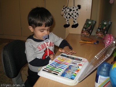 پسرکم وقتی خونه خاله هاش می ره هر کاری از دستش بر بیاد انجام می ده و از هیچ شیطنتی دریغ نمی کنه وقتی ما نشسته بودیم دیدیم هیچ صدایی ازش در نمی یاد رفتیم دیدیم نشسته پای وسایل آمیتیس و می خواد نقاشی کنه